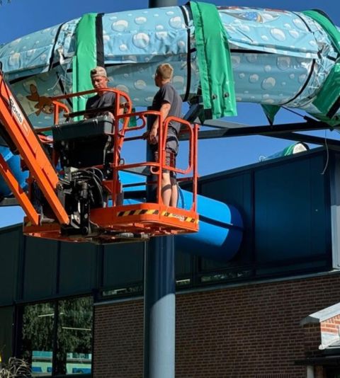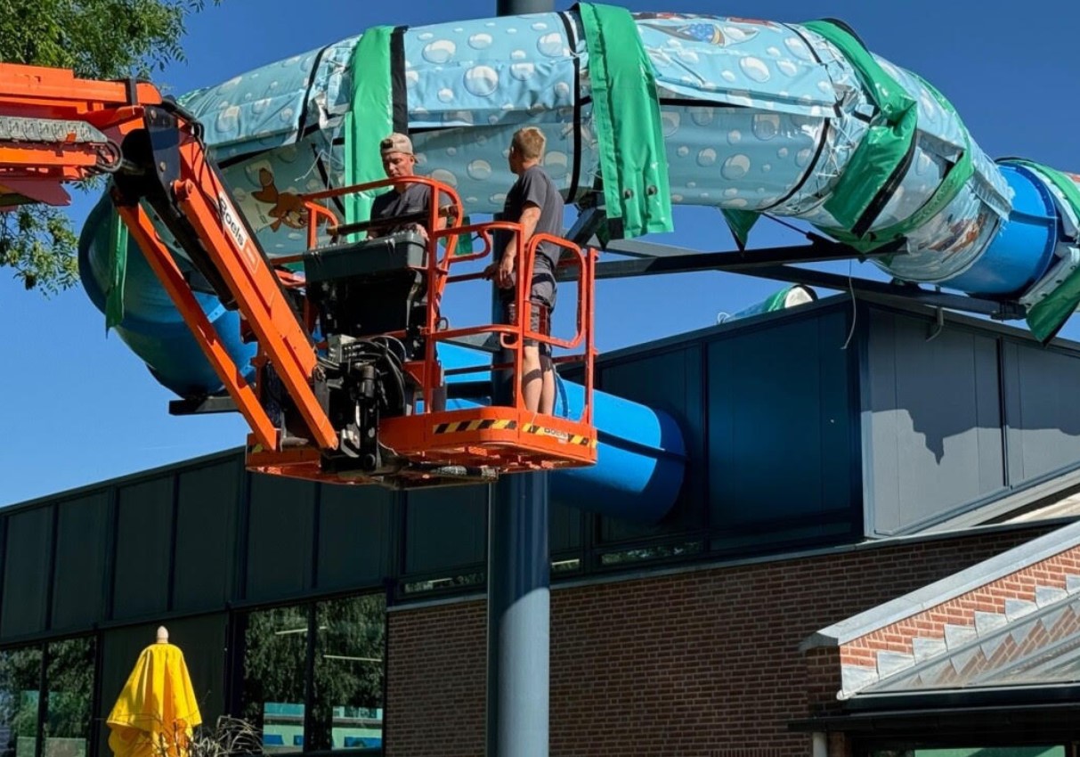 In zwembad De Grote Koppel hebben we de eerste volledig geïsoleerde glijbaan van Nederland, waardoor we flink besparen op energie en warmteverlies minimaliseren.