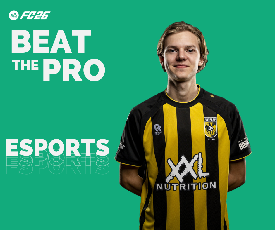 E-sporting is hot. Denk jij dat je een pro kunt verslaan op FC26? Tijdens ons Beat the Pro-event kun jij het opnemen tegen esporter Senne Woudt. Laat zien wat je kunt en maak kans op een unieke ervaring bij het Esports Talent Center op Papendal. Versla je Senne (of maak je het hem écht lastig) dan mag je een officiële training bijwonen van een van Nederlands grootste FC26-talenten. Train een dag mee als een echte pro, leer van topcoaches en ontdek of een esports carrière voor jou binnen handbereik ligt.
