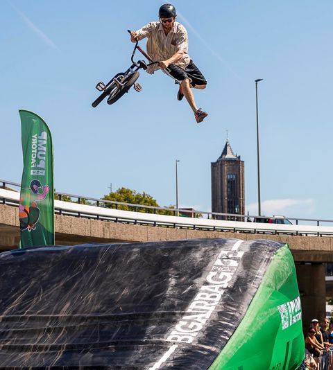 Bekijk BMX-stunts op de Big Air Bag door professionele riders. Wil je zelf een sprong wagen? Dat kan! Met begeleiding land je veilig én spectaculair.